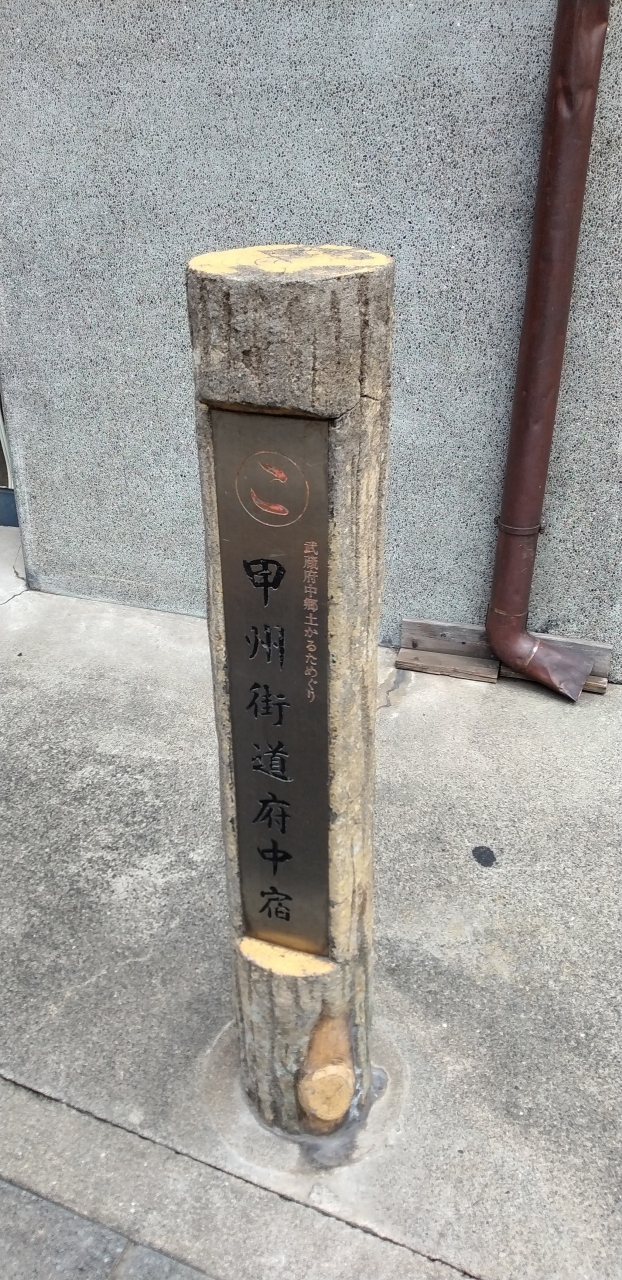 旧甲州街道と府中街道が交差する角に表示がありました。