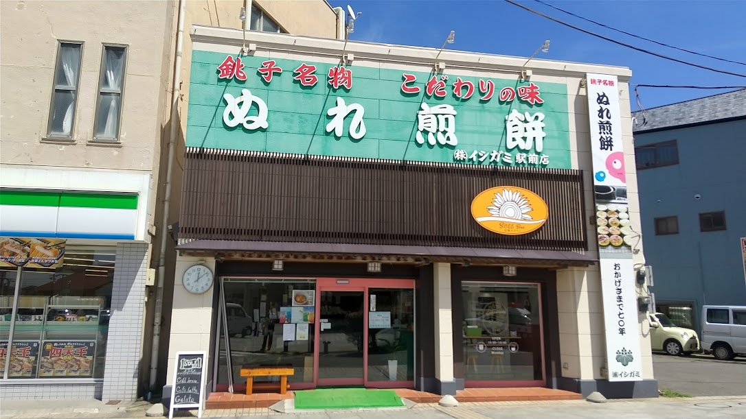 銚子というと銚子電鉄の濡れせんべいが有名になりましたが、銚子には老舗の濡れせんべいがいくつかあり、ここもその一つで、犬吠駅近くに大きな本店があり、その銚子駅前支店です。