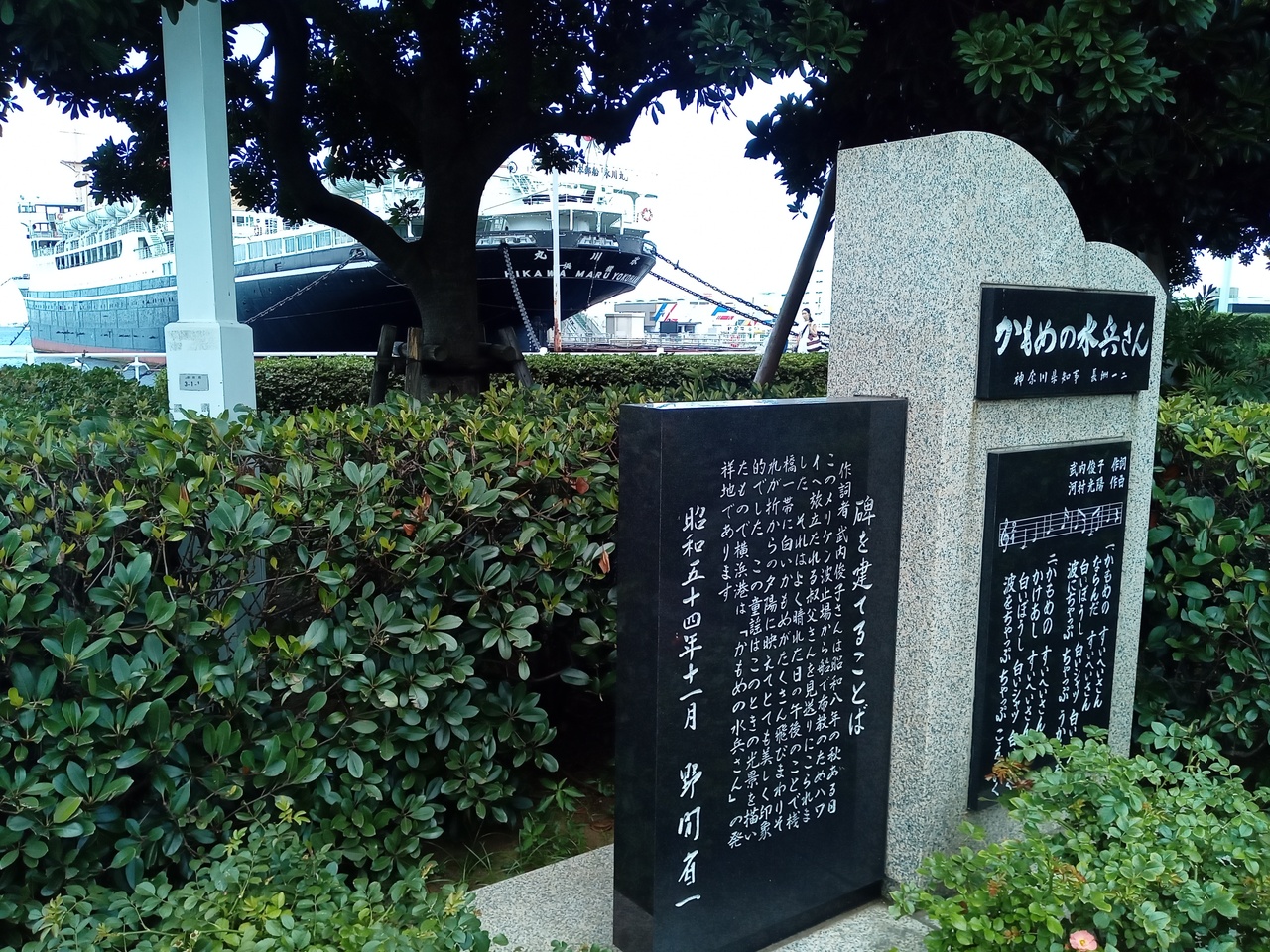 昔からある親しまれている童謡の『かもめの水兵さん』の歌碑『かもめの水兵さんの碑』が 神奈川県・横浜の『山下公園』にあります。