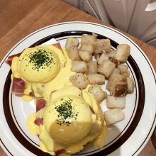 パンケーキのホイップクリームの量は、ぎょっとするボリュームですが、意外と軽くて食べれてしまいます。エッグベネディクトのほうが、味が濃くて途中で飽きます。シェアおすすめです。