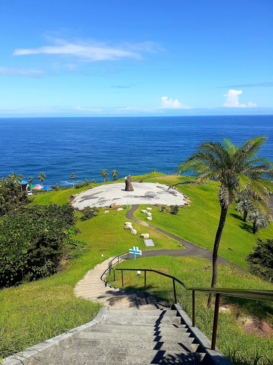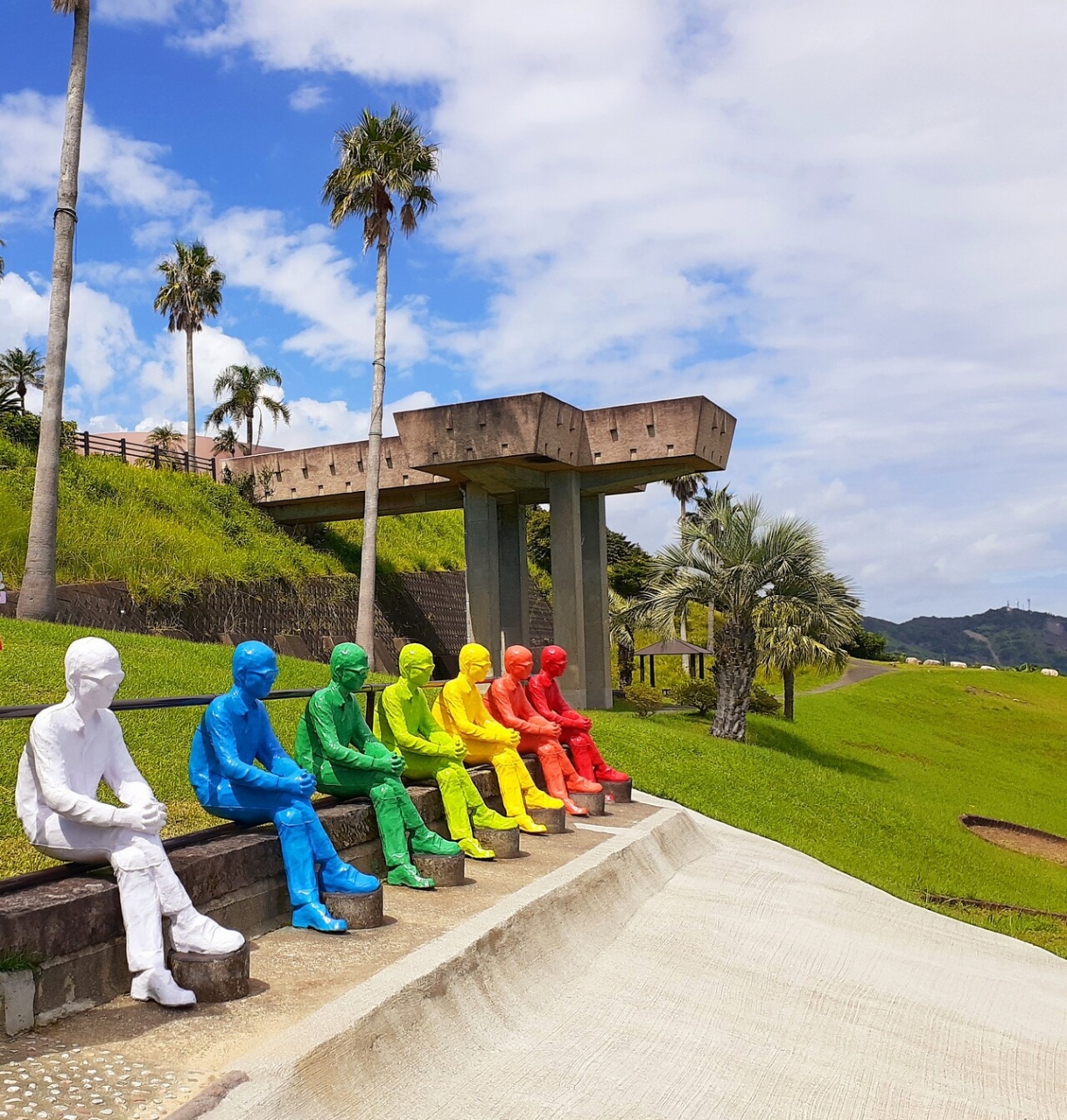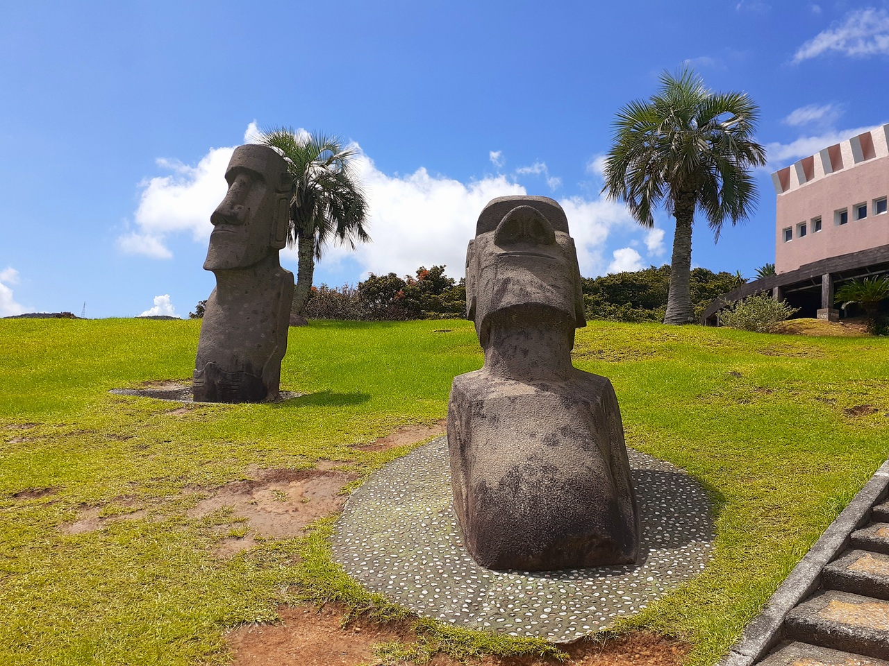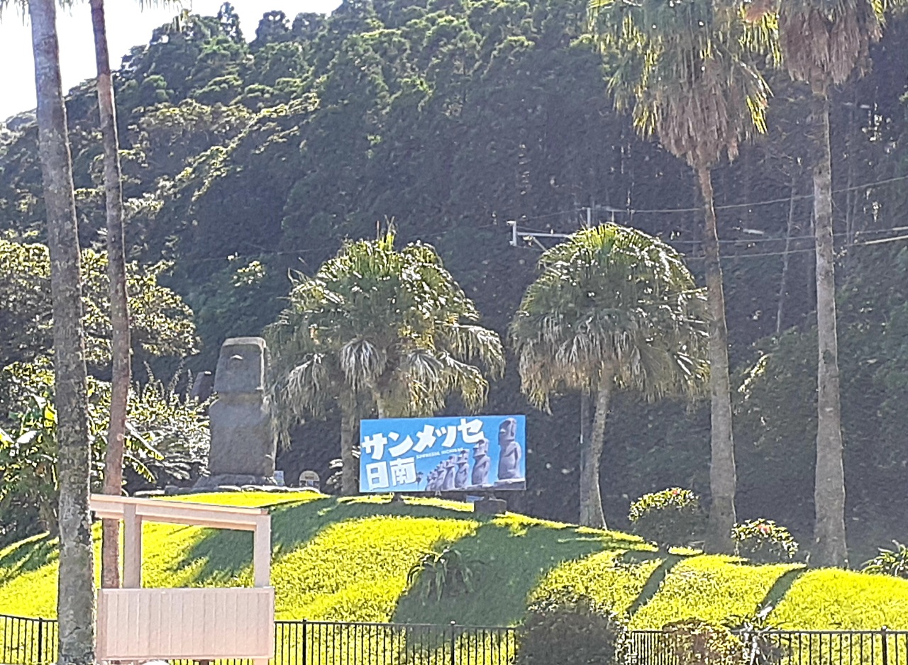 宮崎県日南市にある、サンメッセ日南には、イースター島から正式な許可を得ている10体のモアイ像が♪