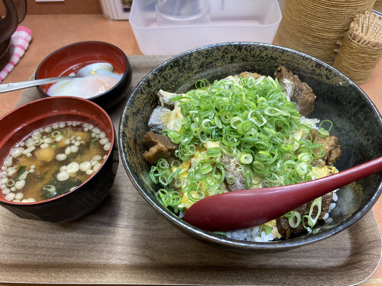 秘伝の甘辛醤油ベースの出汁でコトコト!すじ玉丼に舌鼓