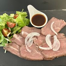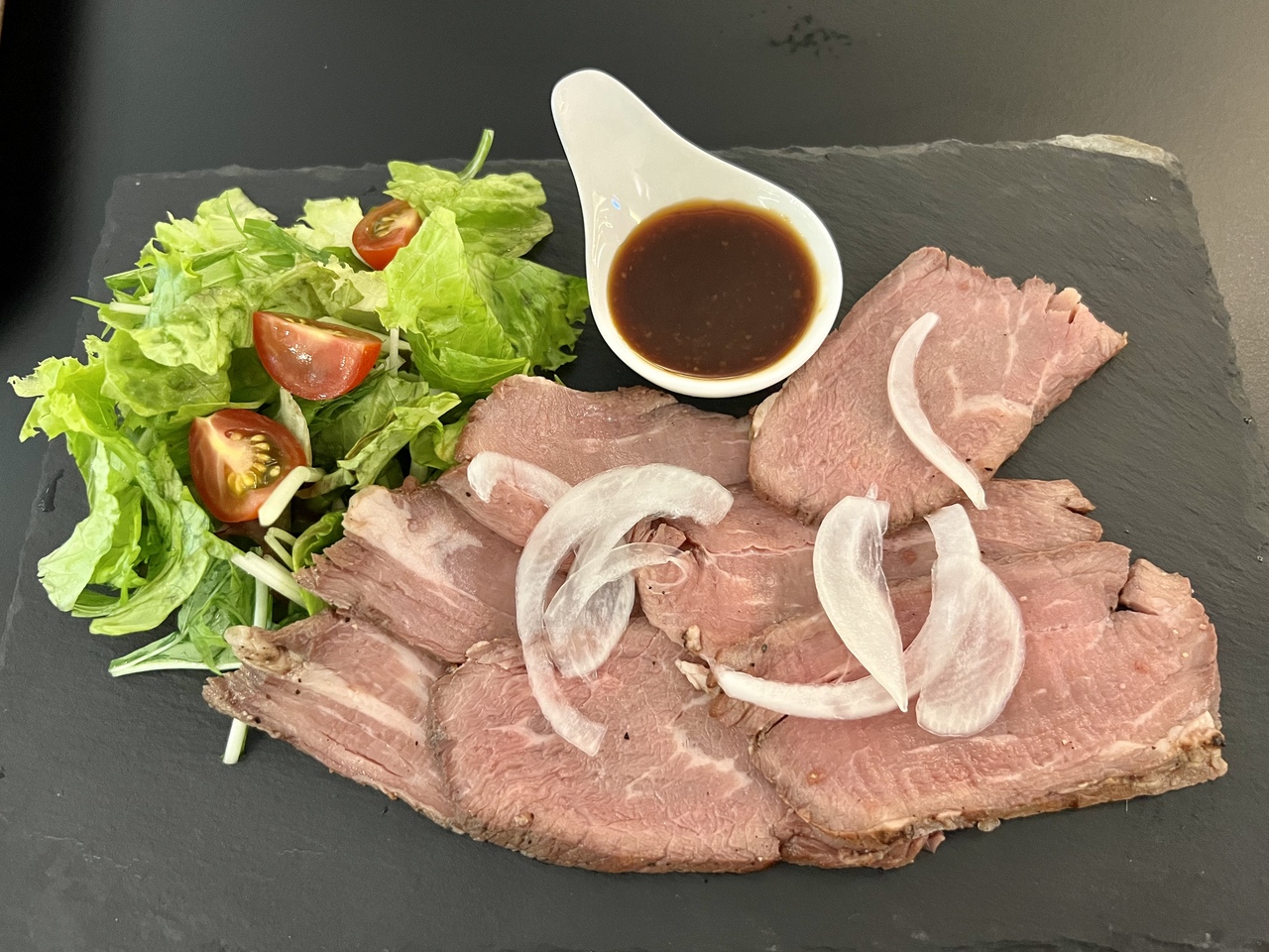 アテでオーダーしたローストビーフは1700円は厚みがしっかりあって、臭みもなく食べやすい!