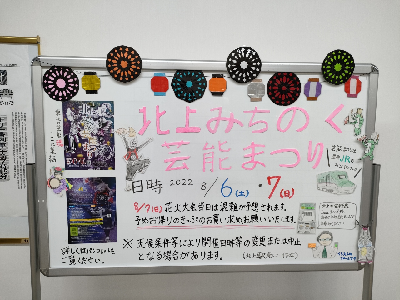 北上地方には、伝統芸能の鬼剣舞が伝わり、北上市内には定期的に鬼剣舞が鑑賞できる居酒屋のお店があるようですが、毎年8月には北上駅前で北上みちのく芸能まつりと題して、鬼剣舞はもとより、岩手県内の様々な郷土芸能が演じられます。