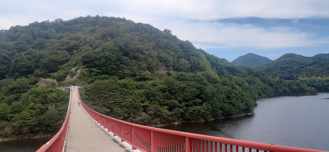 吊り橋とのことですが、コンクリートで歩道は固められていて、あまり吊り橋という感じはしないです。