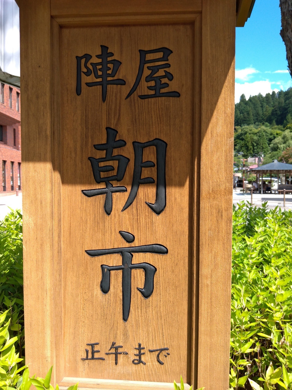 高山陣屋前の広場で毎日午前に行われ、地元産の新鮮な野菜や果物などの農産物、味噌やお米関係のお餅などの食材が中心に並びます。ちょっと気軽にかえるものもあるが、フルーツとか野菜とかは持って帰るの考えるとちょっと難しいかも。でも見ているだけでも地元に触れられる