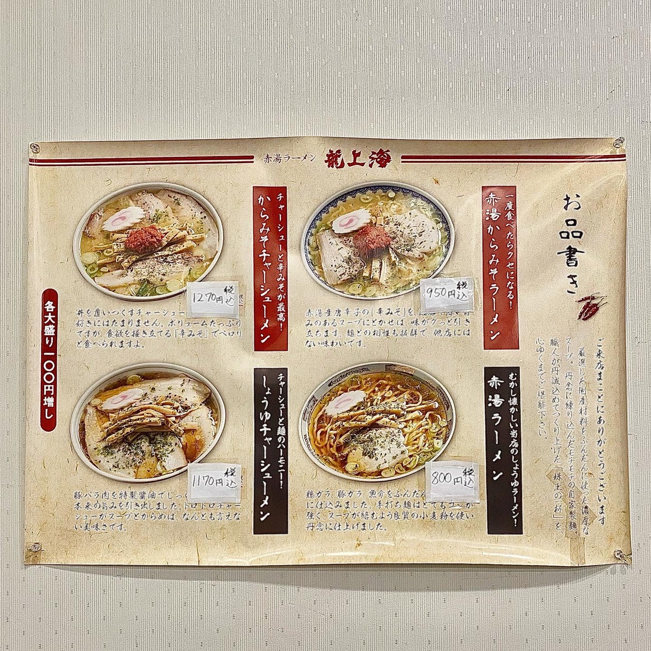 メニューは醤油味の「赤湯ラーメン」と「赤湯からみそラーメン」しかありません。