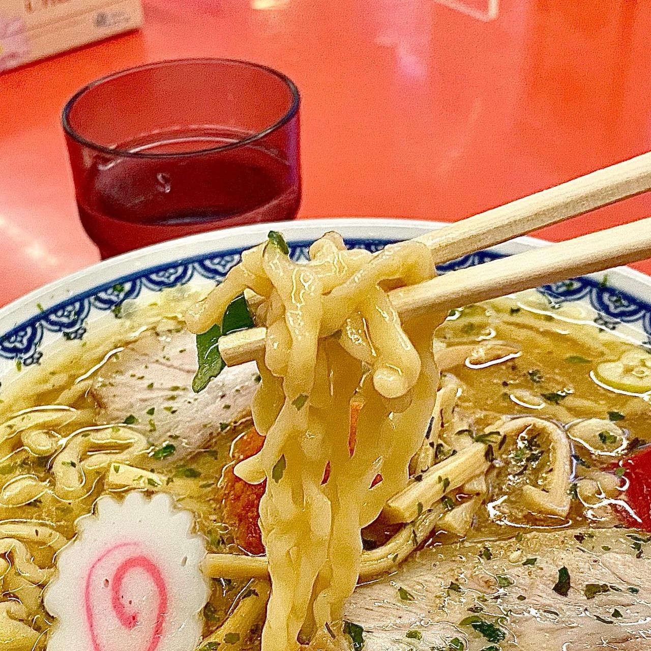 まず、味噌ラーメンとしては、濃いめで深みのある味噌で札幌ラーメンに近い味。そして麺は喜多方ラーメンか佐野ラーメンに近い感じです。