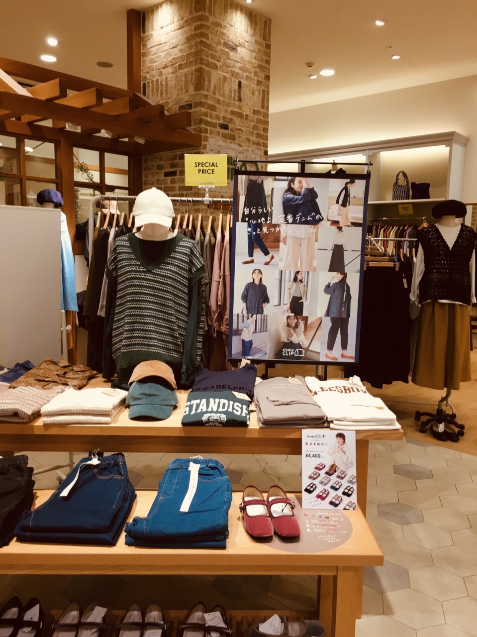 スタジオと言う名前が付いているので、ライブハウスのような店かと思ったら、服屋でした。女性向けの店で、緑のロゴマークが爽やかでした。店内は、明るくゆったりとした店構えで歩きやすく、靴や帽子も売っていました。