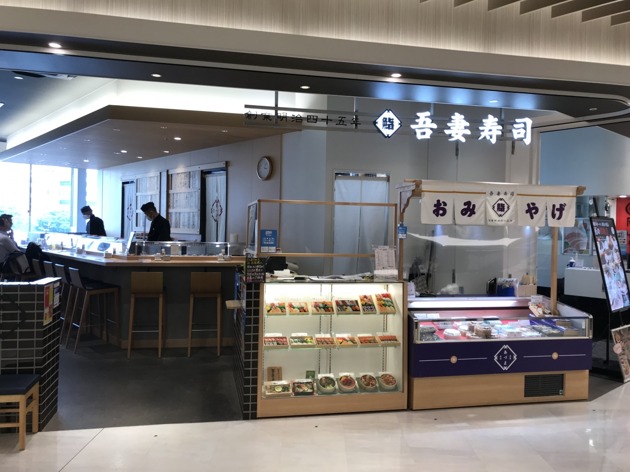 吾妻寿司は、明治45年創業の名店です。今回は、握りの1.5人前を注文しました。下駄に乗った握りは、玉子、鯖、貝、ゲソ、ネギトロ軍艦、ハマチ、海老、烏賊、サーモン、鰆、鮪と太巻きの12缶。ネタは何れも新鮮で瑞々しそうでした。シャリは甘くなく、柔らかさもいい感じでした。美味しかったし、量的にも十分満足できました。