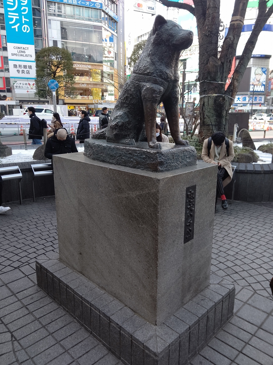 渋谷駅前にある忠犬ハチ公の銅像です。待ち合わせにぴったりの場所として人気です。全国でも忠犬ハチ公の銅像があるのは、ここ渋谷と、本場秋田の二カ所だけです。渋谷の駅前のハチ公は世界的にも有名な存在でガイドブックにも掲載されています。
