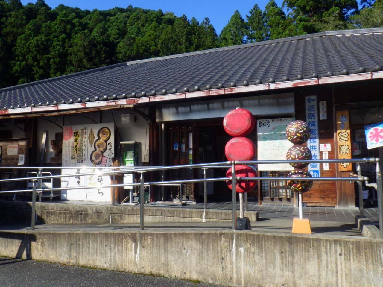 道の駅「豊根グリーンポート宮嶋」から1時間ほどで、道の駅「鳳来三河三石」に到着しました。小さな道の駅でした。五平餅が売りのようで、入り口に五平餅のオブジェがありました。営業時間は17時まででしたが、食事処は早く閉まっていました。
