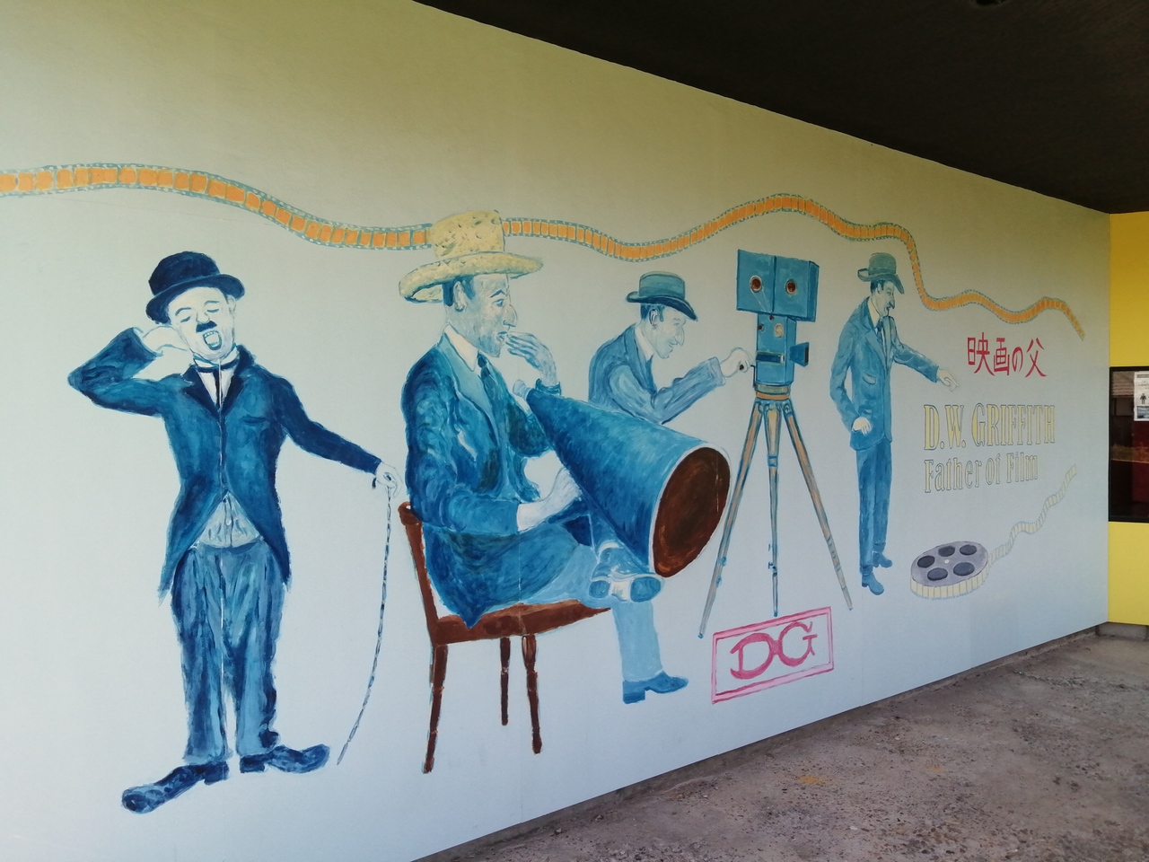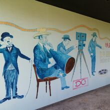古きよき時代の映画館を模しており、壁には手描きのチャップリンや“映画の父”グリフィス。決して古いものではありませんが、雰囲気は味わうことができました。