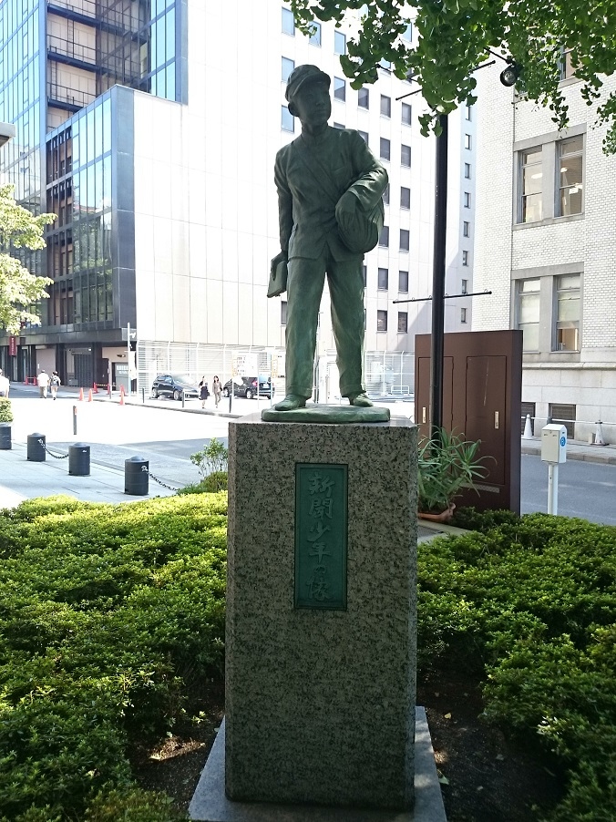 横浜市中区日本大通の横浜情報文化センター前に立っています。日本新聞販売協会の創立50周年を記念して立てられたそうです。大きな像ではあるものの、特に横浜に関係あるわけでは無く、観光スポット的要素はあまり感じられませんでした。