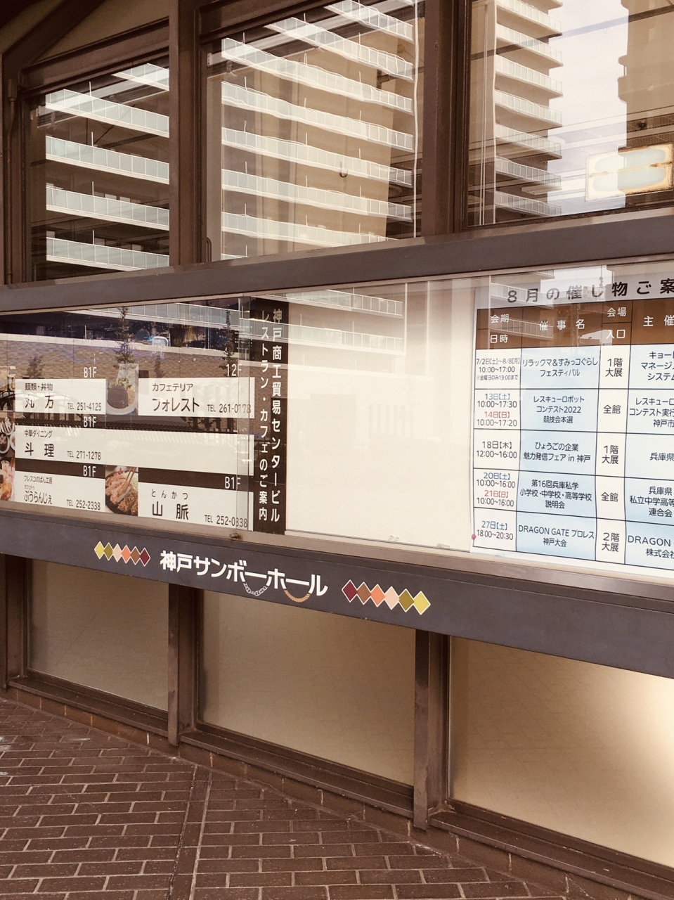 少し老朽化したようなビルで、地下1階と2階には大展示場があり、商談スペースもありました。2階には小展示場もあります。掲示板には日にちごとに展示内容が記載してありました。地下1階にはレストランもあるビルです。