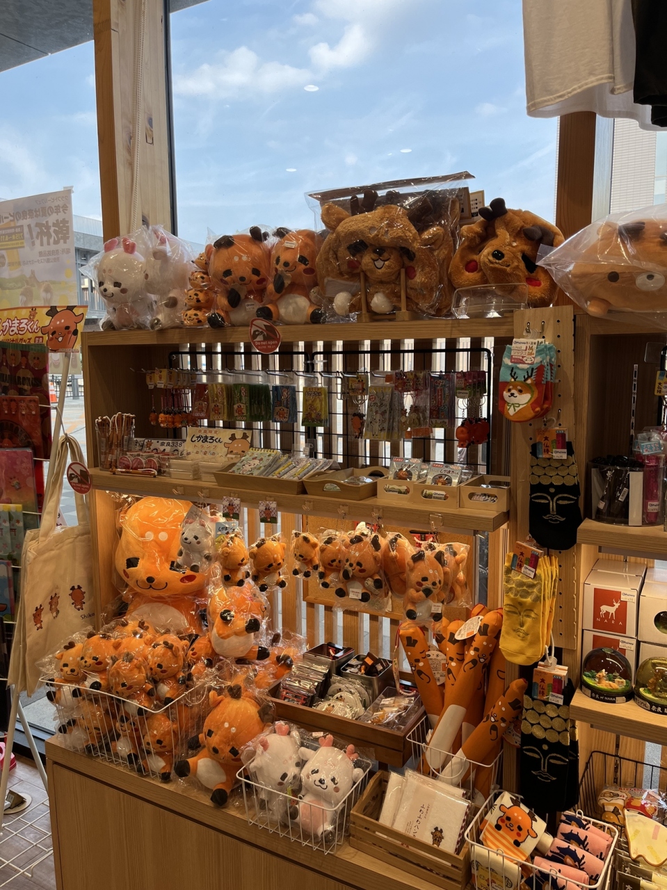 奈良のお土産が揃っているのはもちろんですが、特にシカマロちゃんグッズが豊富にあって、ぬいぐるみは大人でも欲しくなります。昔は、ビニール製のシカが主流だったのにと、時代の流れを感じますね。セント君よりもシカマロ君が最近人気のようですね。