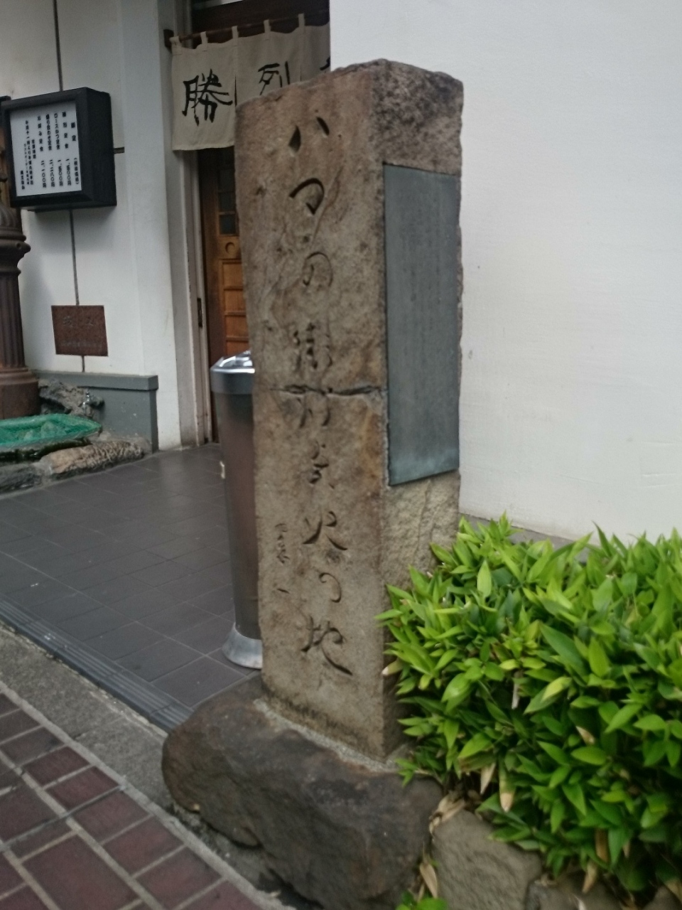 カツレツで有名な勝烈庵の店の前に石の標柱が建っています