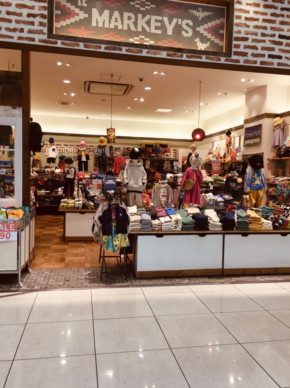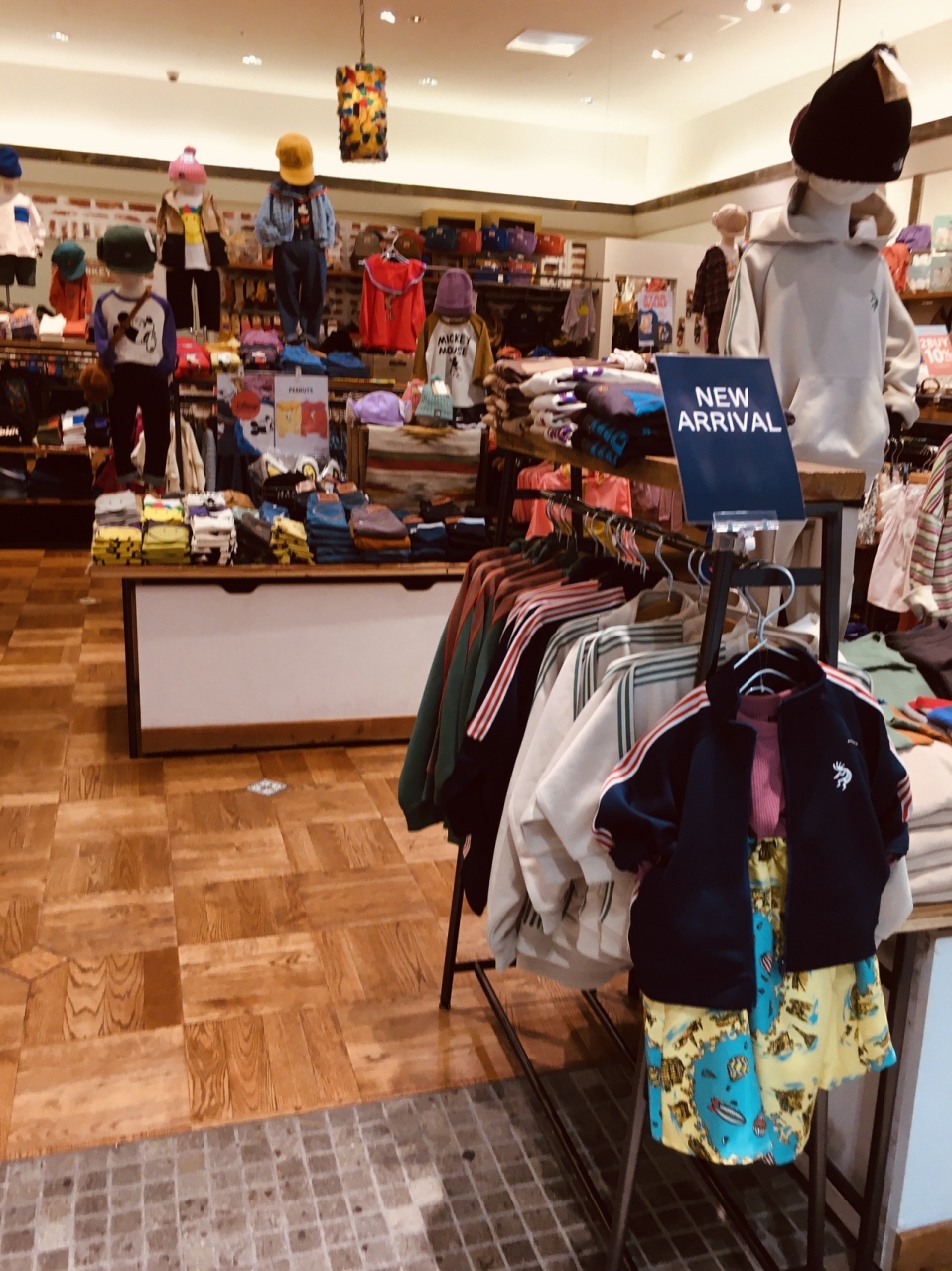 店の外から見て、カラフルな色合いの商品が多い子ども服が多い店で、セール中の商品もいくつかありました。カバンや帽子も置いてあって、ガラが良いものも多数ありました。店内中央に商品が置いてあり、左右から出入り出来ます。