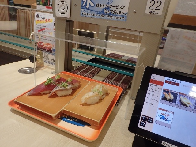 注文した寿司は、ベルトコンベアのように席ごとに届くところが回転すしとは違って、注文は、テーブルごとにあるタブレット端末で行う。肝心の寿司は、さすが清水とあって、どの魚も新鮮で、美味しかった。