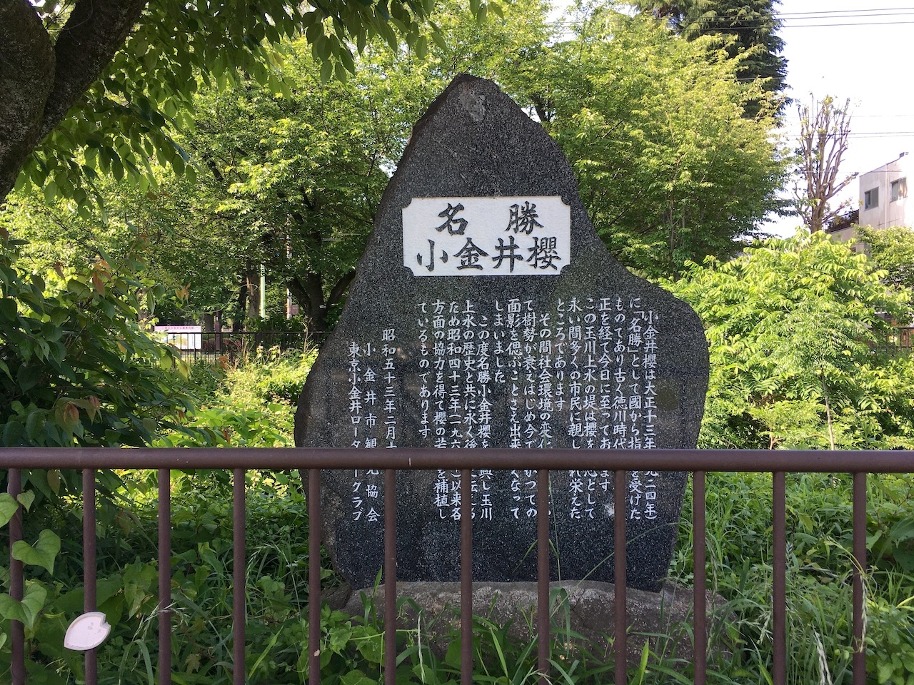 小金井橋の近くに「名勝 小金井櫻」と書かれた細い石柱と、案内板がありました。