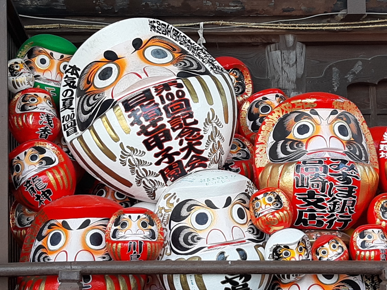 お寺には群馬出身の中山秀ちゃん、お隣栃木のU字工事の達磨、その他甲子園でよく見かける高校の必勝達磨なども飾られていました。