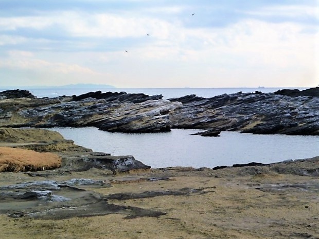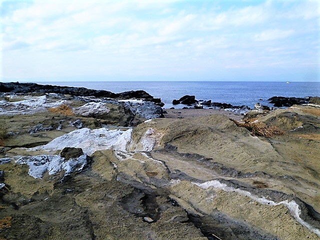 城ヶ島の西端に位置するのが<長津呂崎>で[城ヶ島灯台と岩場/岩礁の海岸]が,,;東端には`城ヶ島公園と安房埼灯台`が知られています。相模湾/太平洋の水平線をバックに彫り重なった岩場/岩礁が凄いです;自分がこの地形に立っているのですね(^^) 提案ですが、岩場/岩礁の地形学的名称があると思いますが、TV`ブラタモリ`を一度この<長津呂崎>に♪