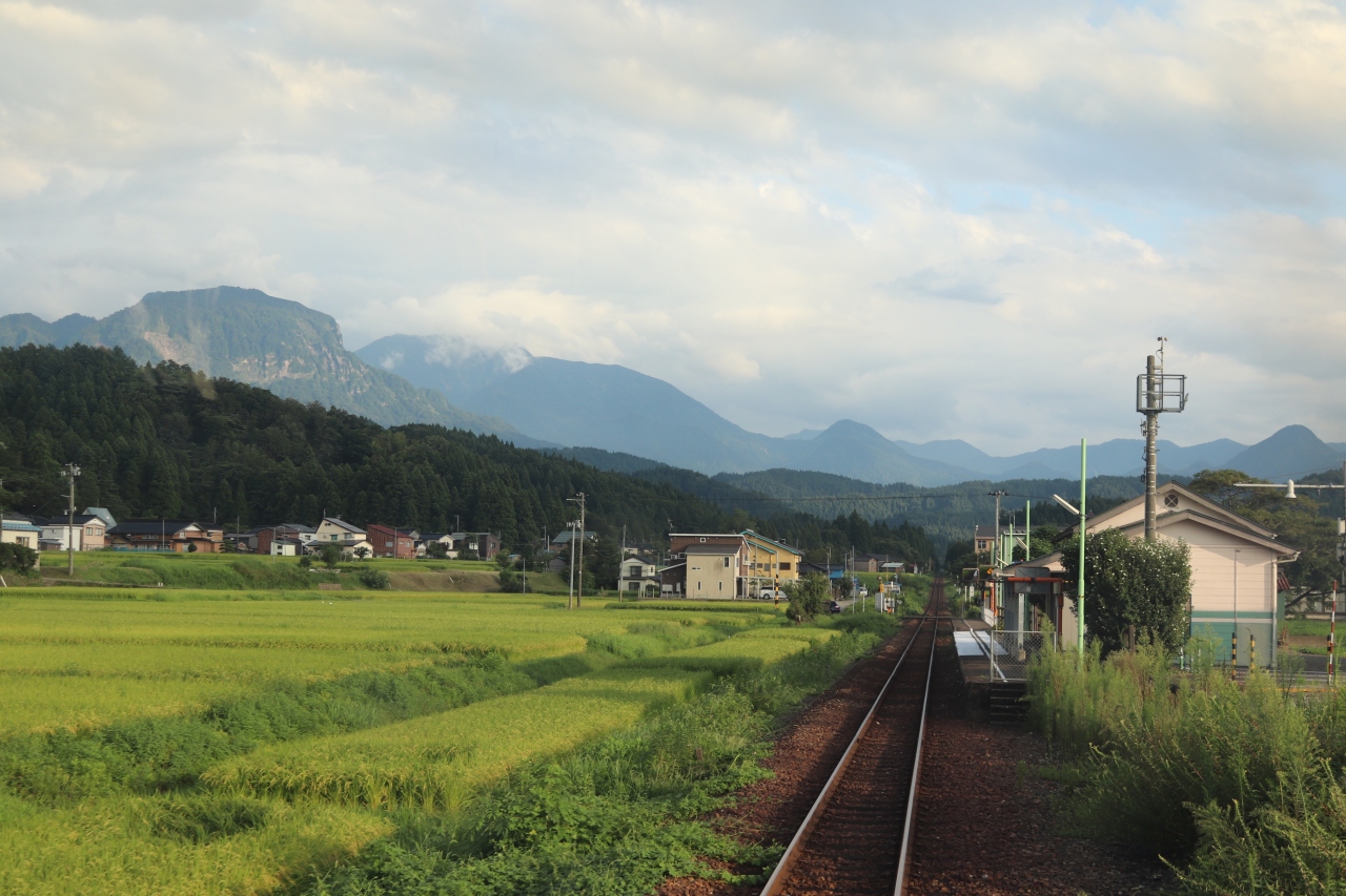 長野県小谷、新潟県糸魚川の県境にある日本百名山のひとつの山です。大糸線の車窓から眺めることができました。南小谷を出ると列車は姫川沿いに走りますが、新潟県に入り、姫川から離れると後方に眺めることができます。2千メートル近い高峰です。