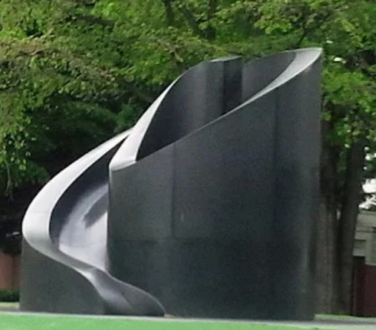 札幌大通公園にある現代アートです。真っ黒でずっしり感のあるフォルムが芝生で目立つ存在です。