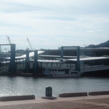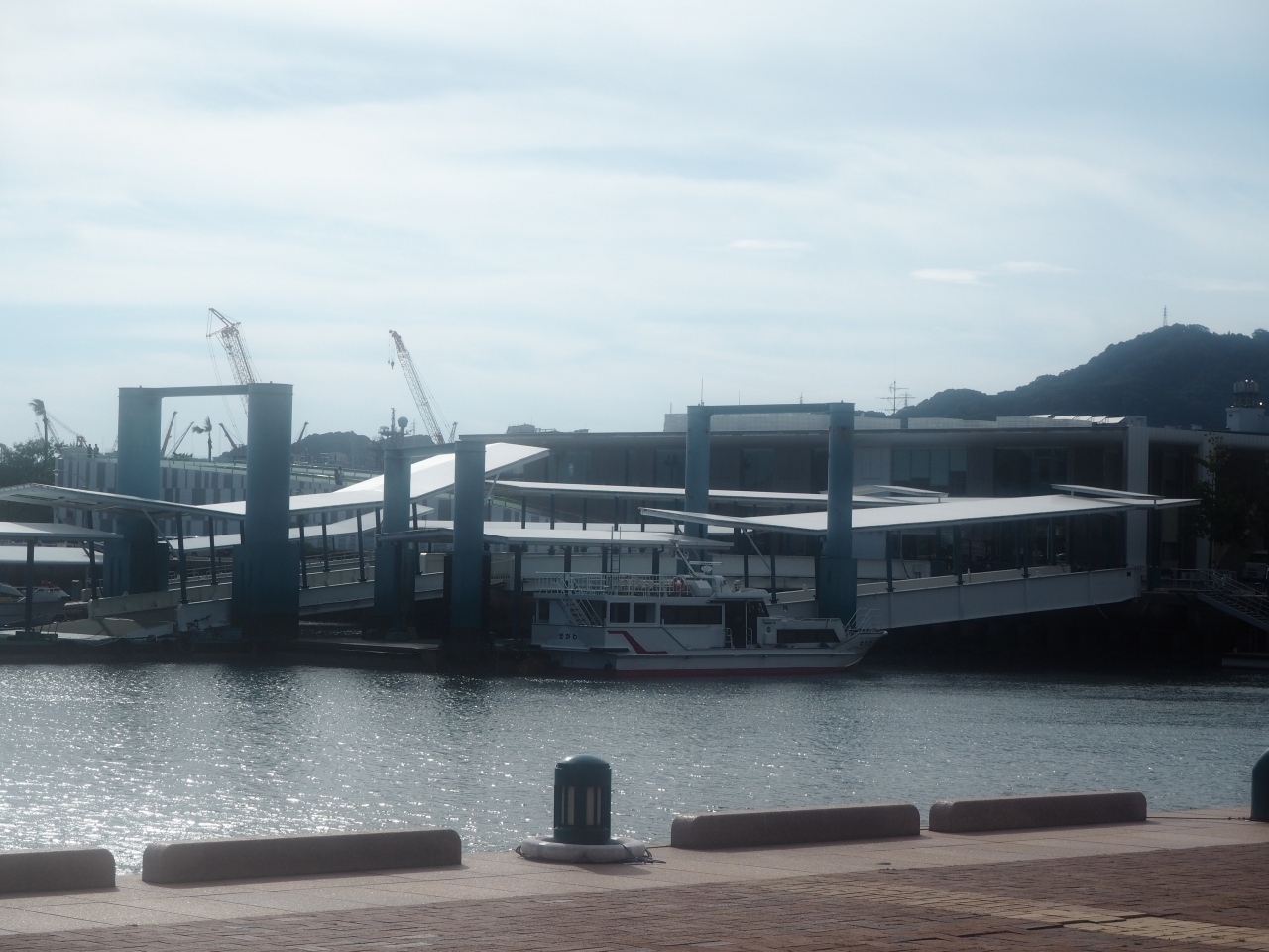 佐世保駅のみなと口から道路を渡り、佐世保港が見えて、右に歩いてすぐにあるターミナルが佐世保新みなとターミナルです。100メートルほど先には鯨瀬ターミナルがあります。新しくきれいなターミナルで2階建ての建物で、2階は港湾部庁舎になっており、1階に待合室と券売所があります。このターミナルからは大島や松島や池守への便が出ています。