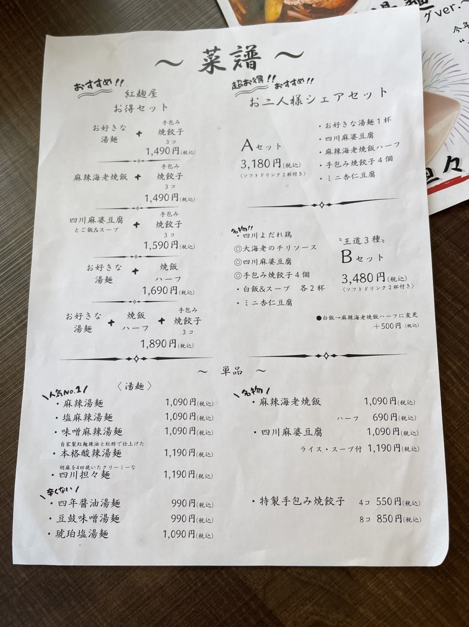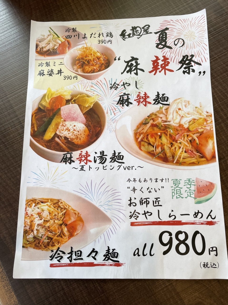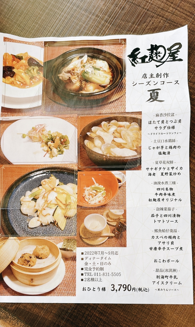 メニューが夏限定あり 「紅麹屋」四川菜麺 札幌美園