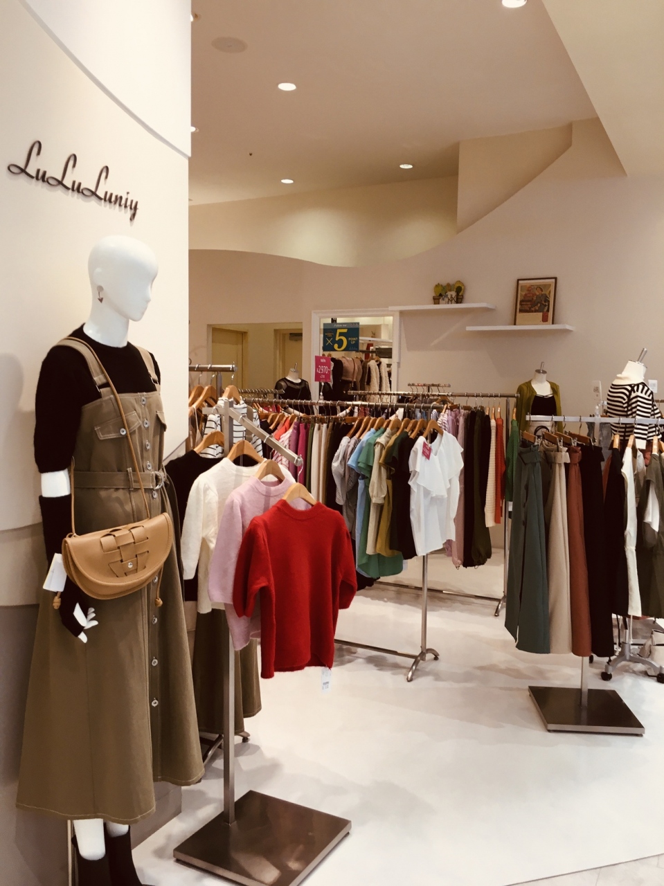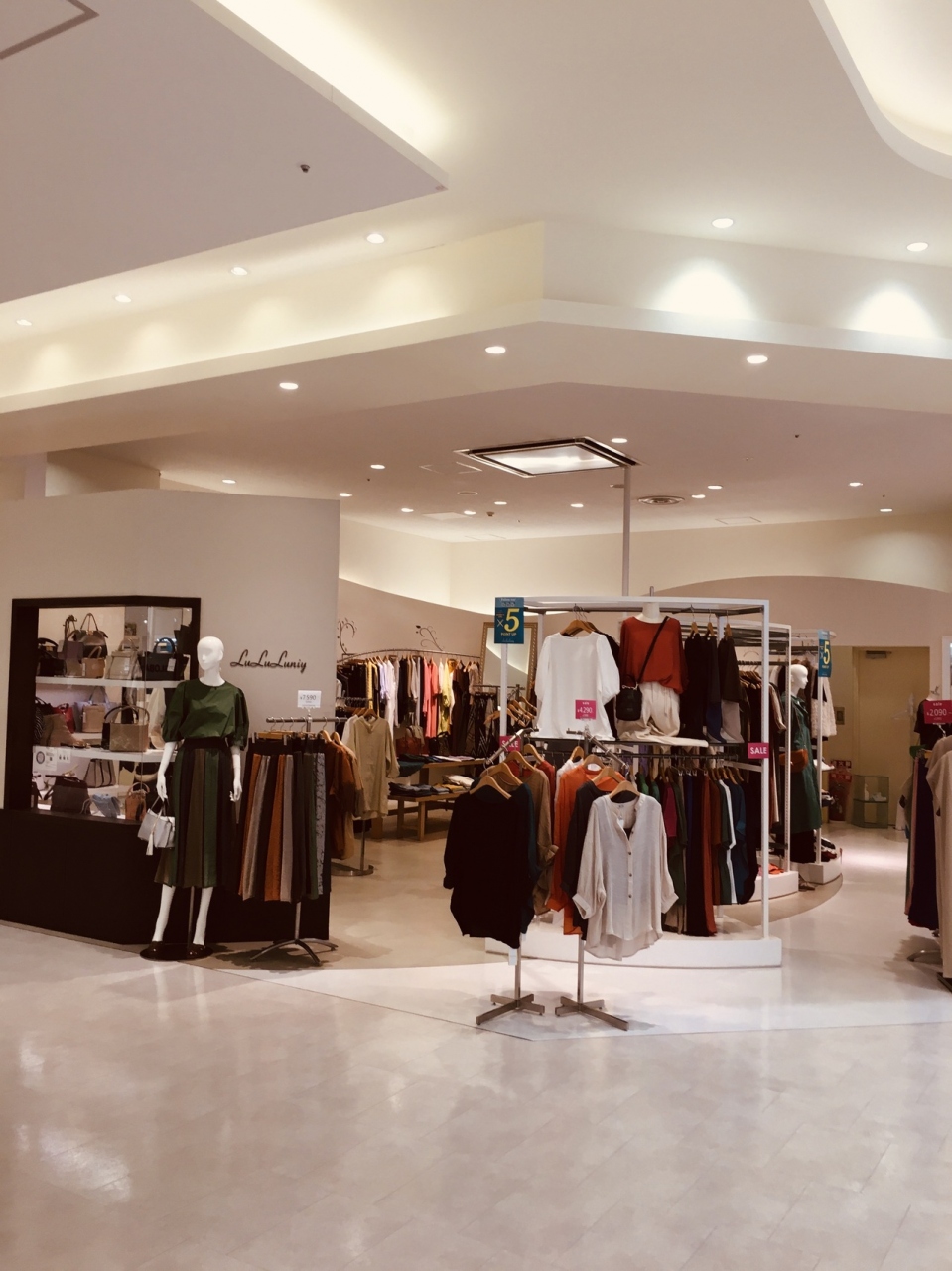 店内はハンガーには掛けて展示している物が多く、濃いめの色合いの服が多かったです。セール中の商品とポイント5倍の商品がありました。ごちゃごちゃ感がなく、ゆったりとした店内で入り口左側にあるマネキンが目立っていました。