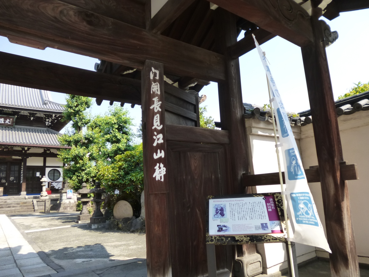淡島寒月は、明治時代に活躍した作家であり画家です。その旧居跡を記す案内板が、墨田区にある弘福寺の山門前に設置されています。