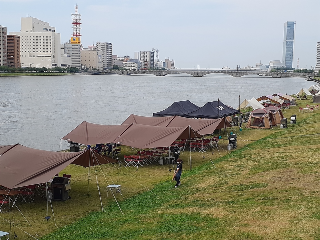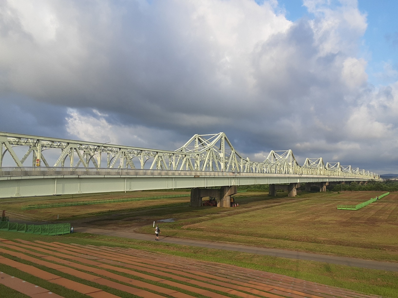 新潟市内および長岡市内宿泊時、それぞれの街中を流れる信濃川沿いを朝ラン。