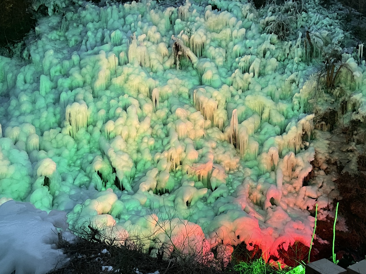 芦ヶ久保駅から入口まではすぐでした。そこから、徒歩でしばらく行った先に氷柱がみられます。日没後はライトアップされており、幻想的でした。チケットは事前にオンライン購入していたため、スムーズに入場できました。