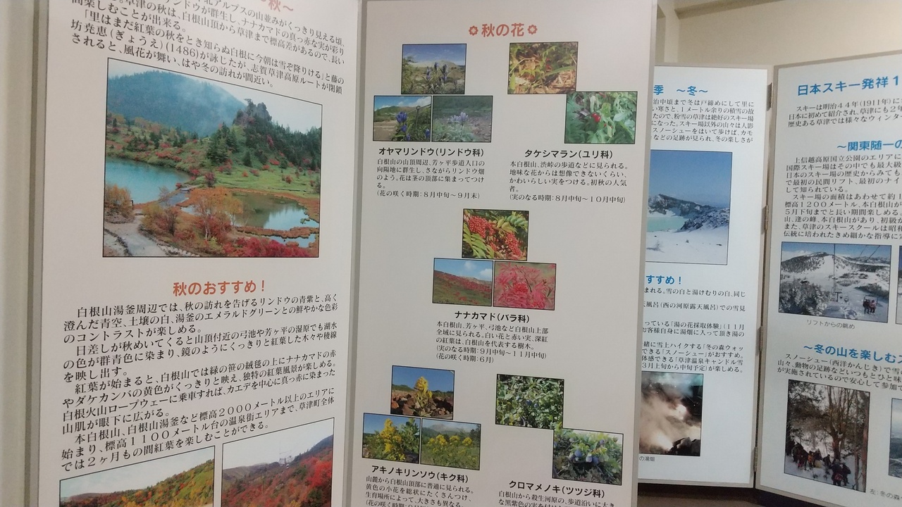 初めて散策途中に立ち寄りましたが、高山植物や野鳥の剥製の展示、草津の季節毎の写真、草津の歴史などがわかりました。