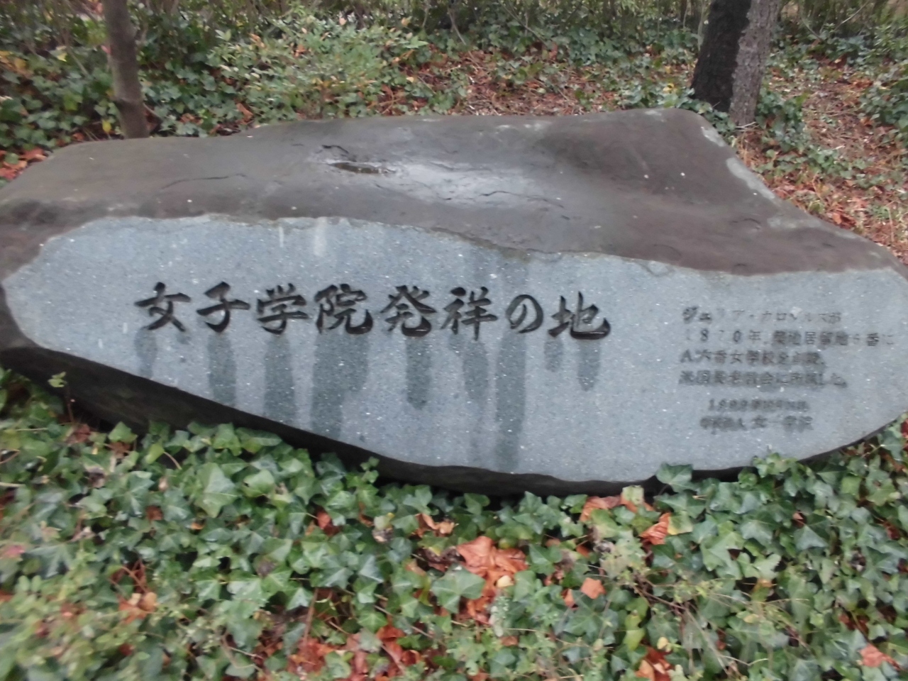 築地にありますが、ほかの碑と比べると低く形も雑な気がします。女子学院と言えば受験業界では女子御三家として有名な学校。そういう学校だとやはり碑が残ったりするのでしょうか?まあそれだけの歴史があるということなのでしょう。