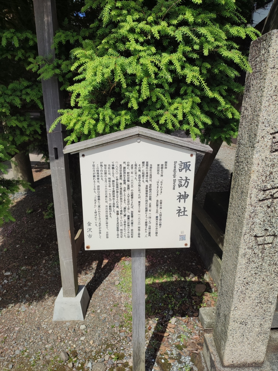 金沢市の繁華街の南側の犀川を超えたエリアがお寺が数多く集まっておますが、その中では珍しい神社です。こじんまりとした神社ですが、起源は室町時代にもさかのぼるそうです。名前の通り、諏訪明神が合祀されています。山門ばかりだったので鳥居が新鮮でした。