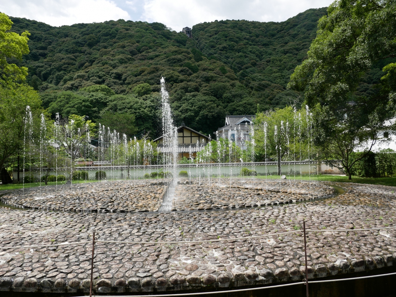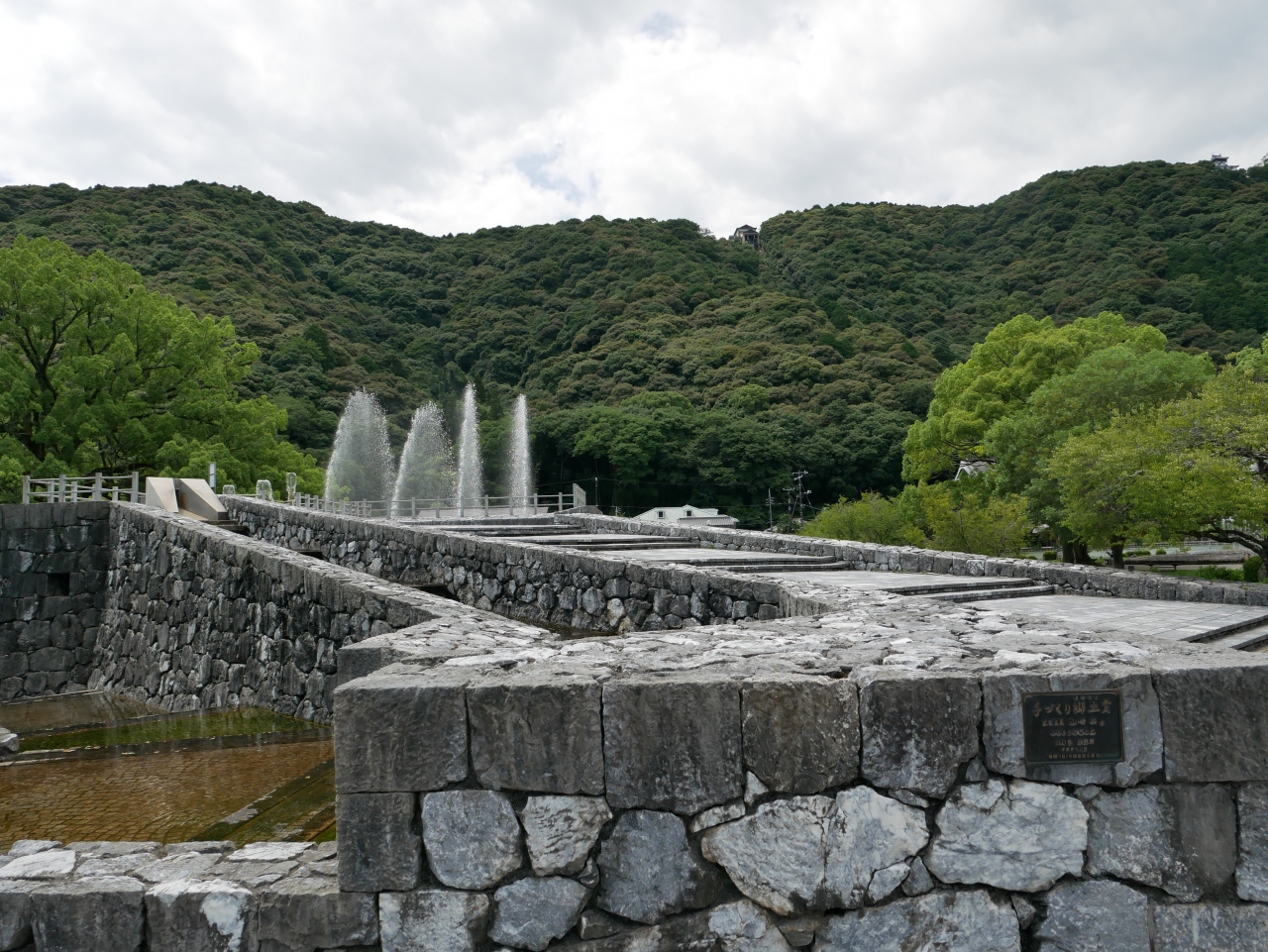 吉川家の居館があったところに整備された公園ということですが、噴水あり、水の流れあり、お花ありと、きれいに整備されていました。