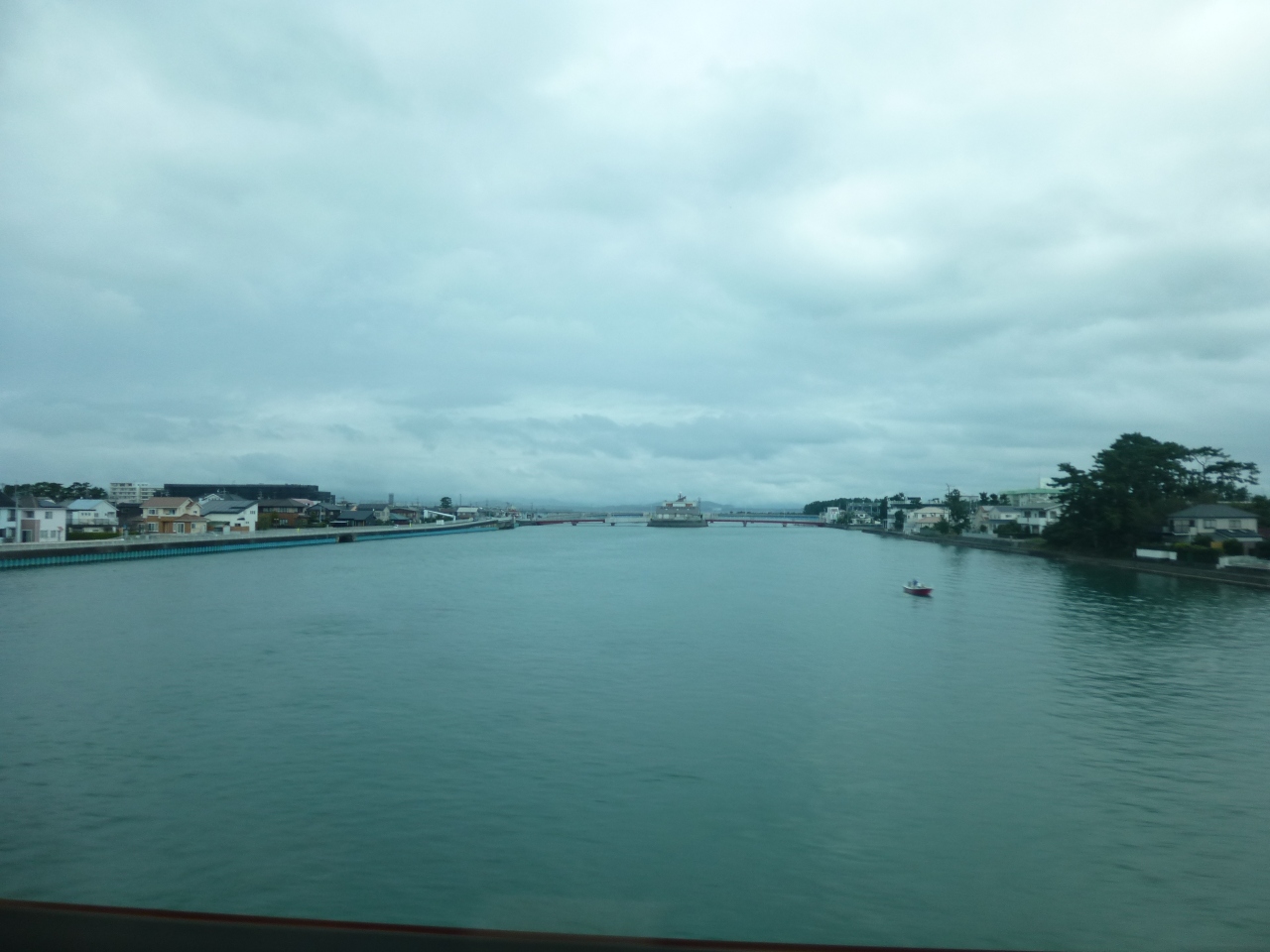 東京方面に向かう新幹線では進行方向左側に浜名湖が見えます。浜名湖から流れ出る大正川に架かる白い斜張橋「サンマリンブリッジ」を過ぎるとすぐに浜名湖の姿が見えてきます。あいにくの曇天でしたが、観月橋と朝日橋の姿も見てとることが出来ました。