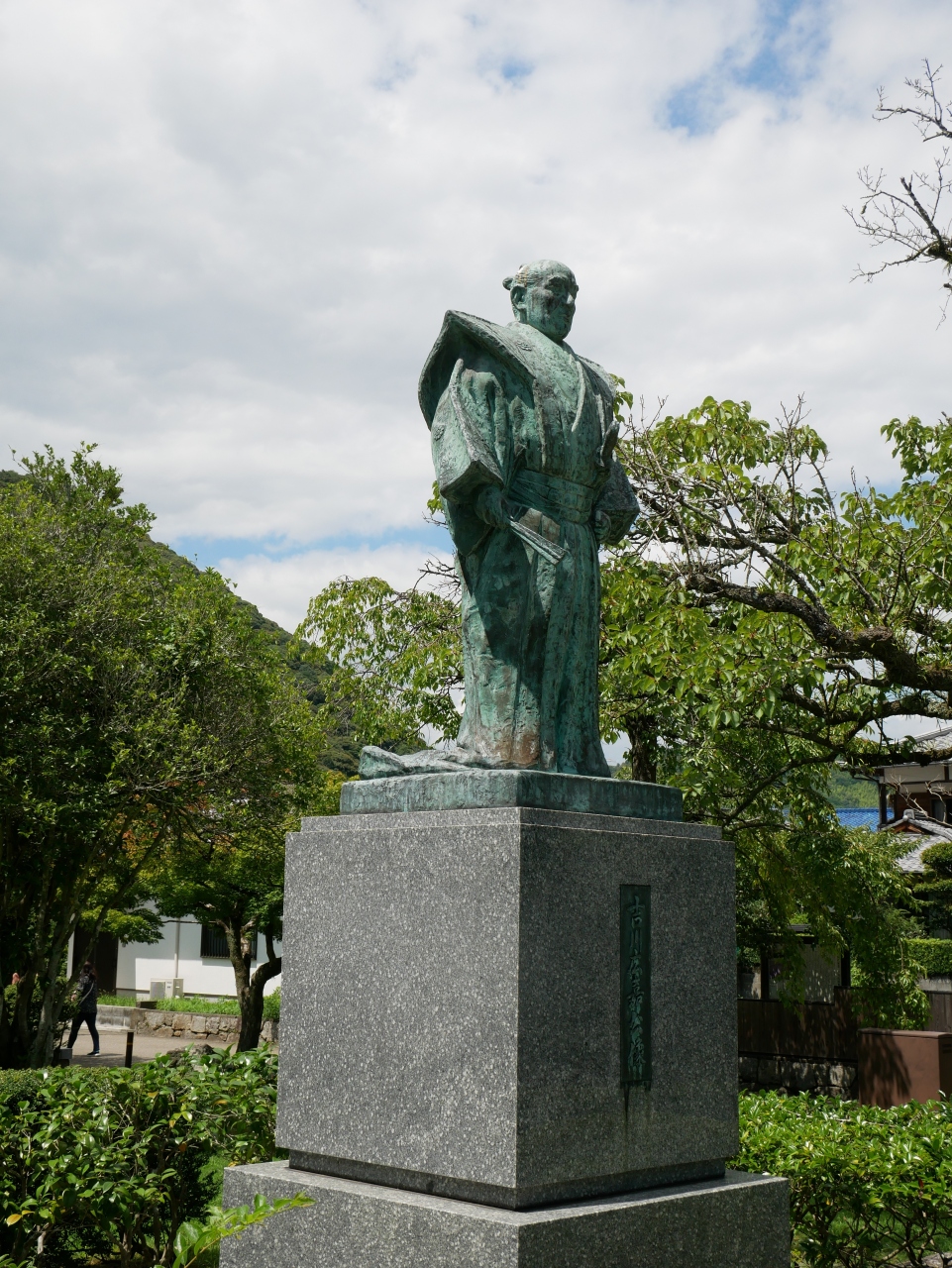 錦帯橋を渡って公園やお城の方に向かって歩いて行くと、まず目につくのがこの銅像です。