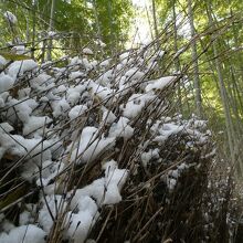 雪はあまり積もっていませんでしたが柵には少しだけ雪が積もっていて、雪と竹のコラボも楽しめました。