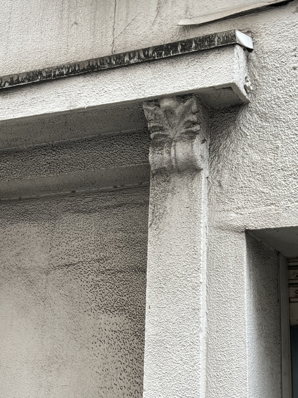 煉瓦のアーチが連なりその下がコンクリート造りの倉庫などに使われていますが、その入り口のちょっとした庇部分に西洋風のデザインの小さな持ち送りをきちんと付けてあって、芸が細かい!と思わず唸ってしまいました。