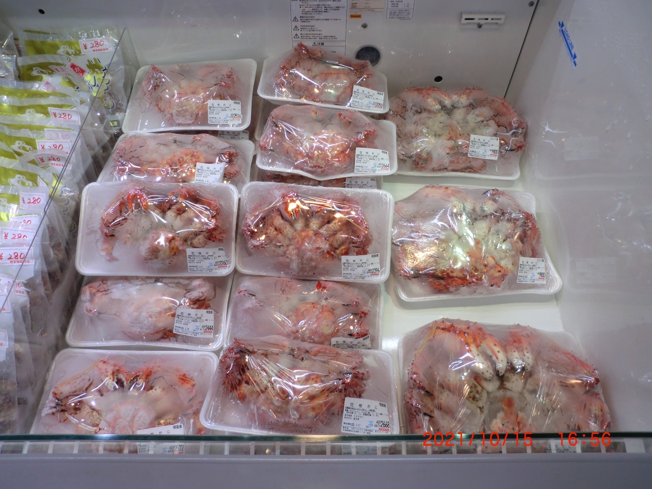 到着は16:30でしたが片付け始めていました。慌てて花咲ガニX2・シマエビ・鮭とば・塩辛など10000円前後を買い、クールで送る手配しました。(16:56)