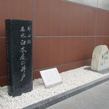 コレド日本橋の建物の裏の一か所に漱石名作舞台の碑と共に移設されています。以前訪れた時は、コレド日本橋の裏に建つアネックス前の緑地帯にありました。現在、日本橋1丁目の広範囲の再開発で工事中です。それぞれの石碑と説明碑の保存で集められたようです。江戸時代白木屋の二代目大村彦太郎は日本橋付近の水不足を解消するために、店内に井戸を掘る難関工事を行いました。清水が湧いたことを後世に伝える石碑です。今回久しぶりに日本橋を散策して、再開発がいくつも行われていることを知りました。購入したことのある店舗が見当たらずがっかりしました。