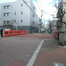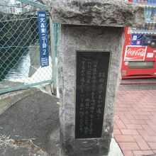 朱色の欄干の内田橋の袂に石柱と説明板があります。