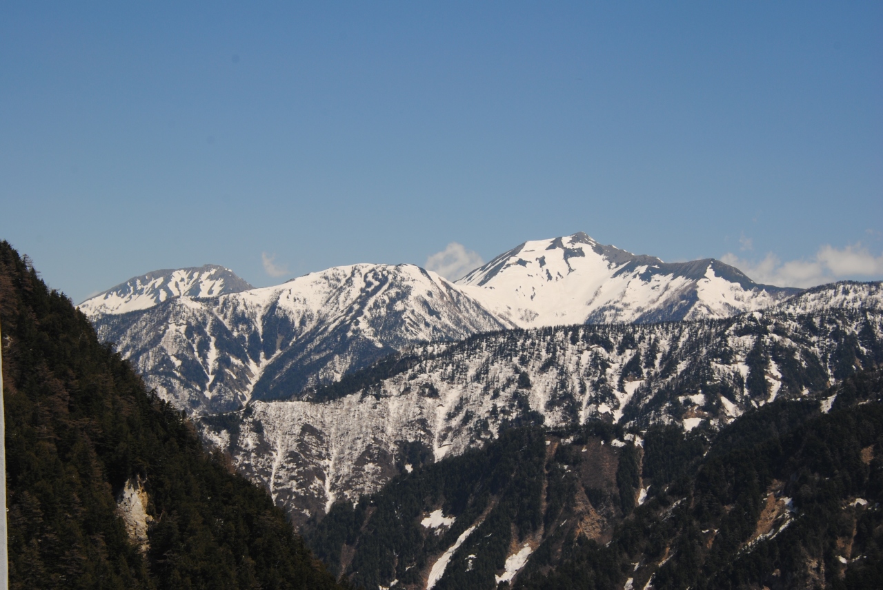 右奥の白い山々は、天井岳、南沢岳、野口五郎岳あたりかな?