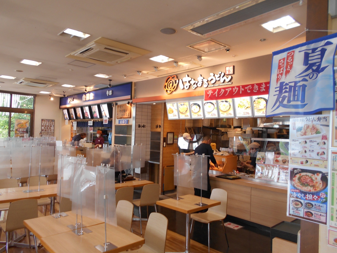中央自動車道の瑞浪市土岐にあるパーキングエリア上り線のフードコート。建物に入って直ぐ左側にファストフードのセルフうどんのはなまるうどんと牛丼の吉野家があります。両方食べたかったですが、わかめうどんにトッピング竹輪天を頂きました。美味しかったです。