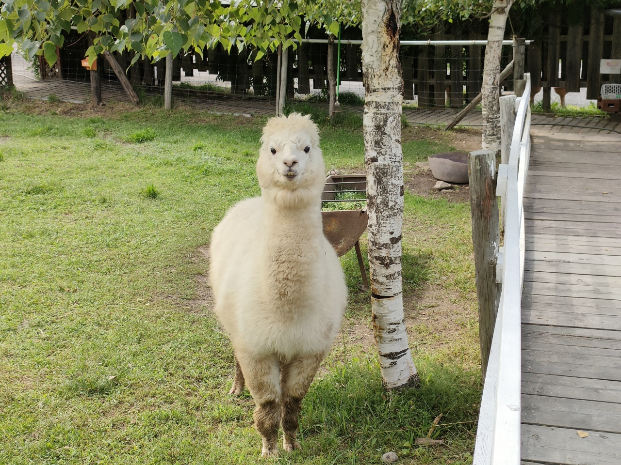 指定エリア内であれば、柵の中に入ってアルパカを触ったり…と言うか、首根っこつかんで無理やり記念撮影などなど。