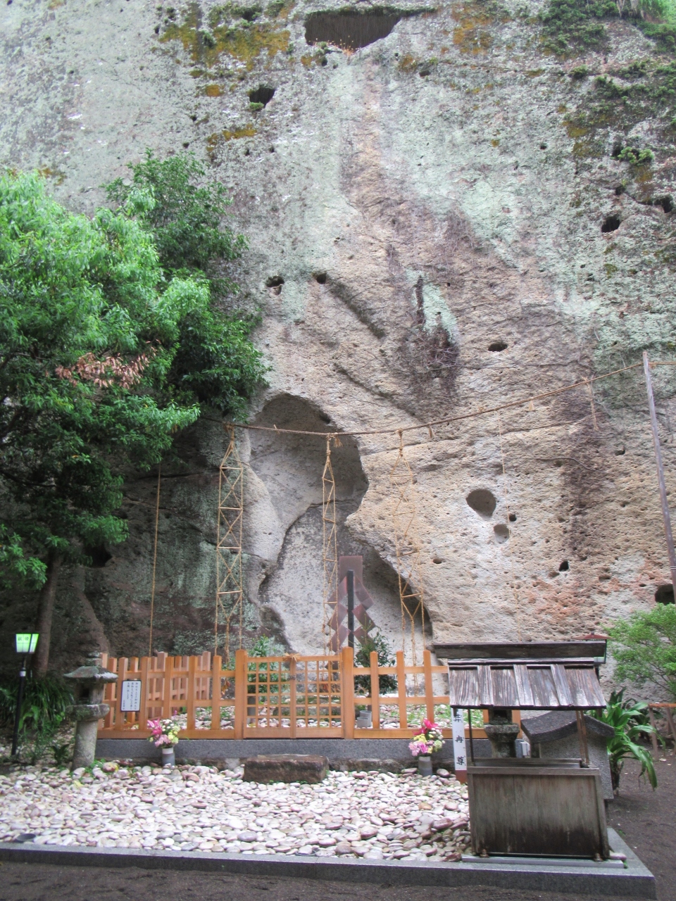 今日に至るまで社殿はなく、熊野灘に面した高さ約45メートルの巨岩である磐座(いわくら)が御神体です。