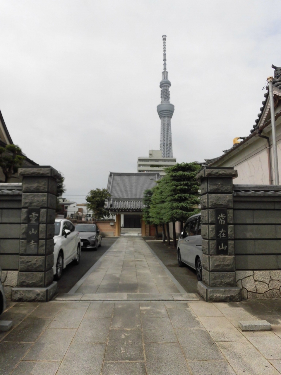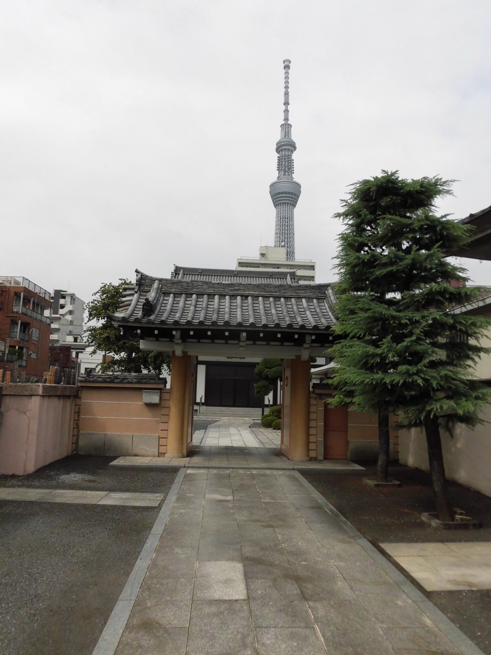 墨田区の横川近辺を散策していた時に立ち寄ったお寺です。スカイツリーも良く見える場所ですが、タワービュー通りとは一本道がズレているので、山門や本堂の真後ろより少し右側になってしまうのが景観として残念でした。境内などは手入れが行き届いていて落ち着きが感じられるお寺でした。